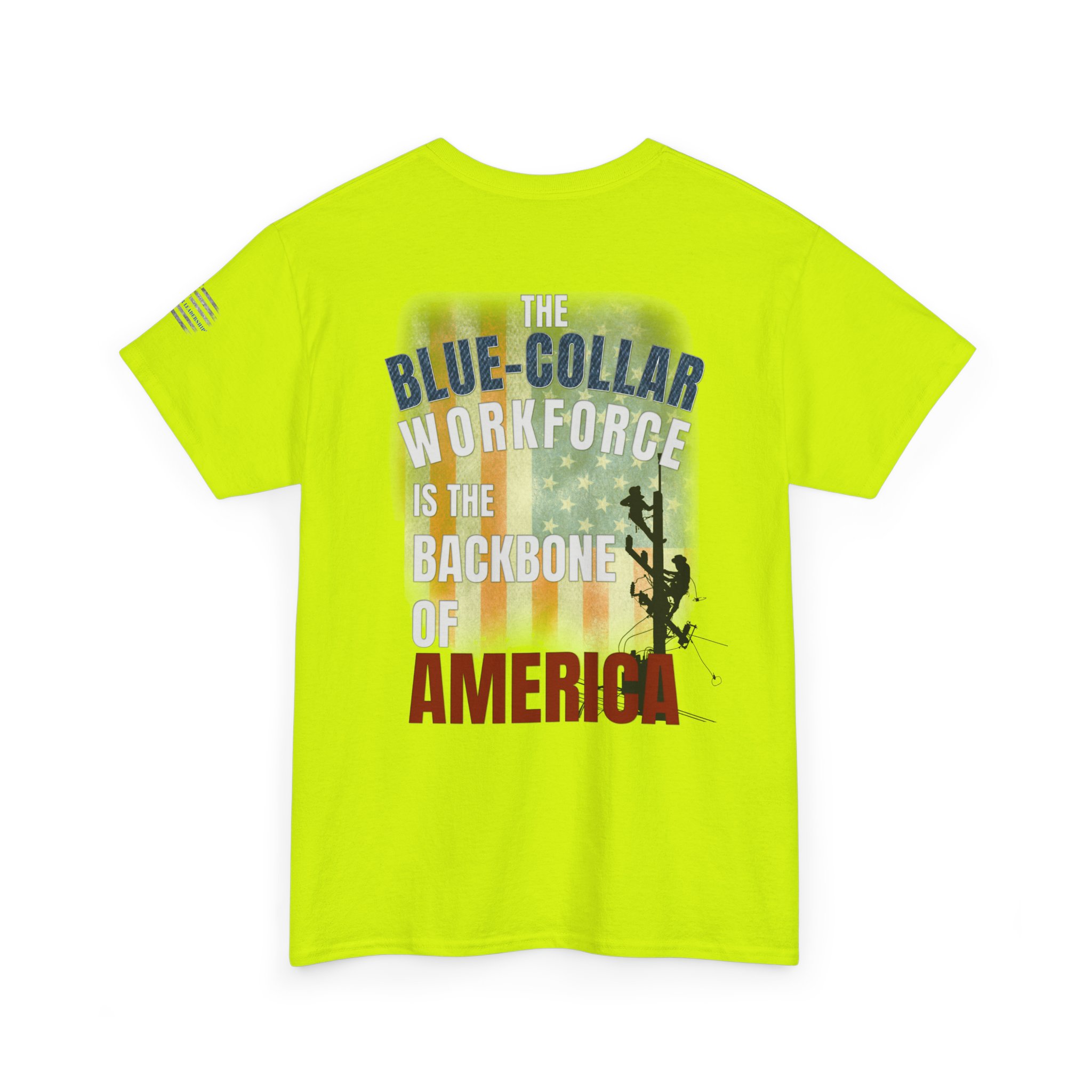Introducing a classic Unisex Heavy Cotton Tee, perfect for those who value comfort and style. This tee radiates a relaxed vibe, making it ideal for casual outings or semi-formal gatherings. It effortlessly fits into a buyer’s everyday wardrobe, allowing for easy movement and a laid-back attitude. Its bold design features a hard-working lineman, making it particularly relevant for labor day celebrations, team events, or as a thoughtful gift for the working class hero in your life. Show your appreciation for the blue-collar workforce any time of the year with this versatile shirt.