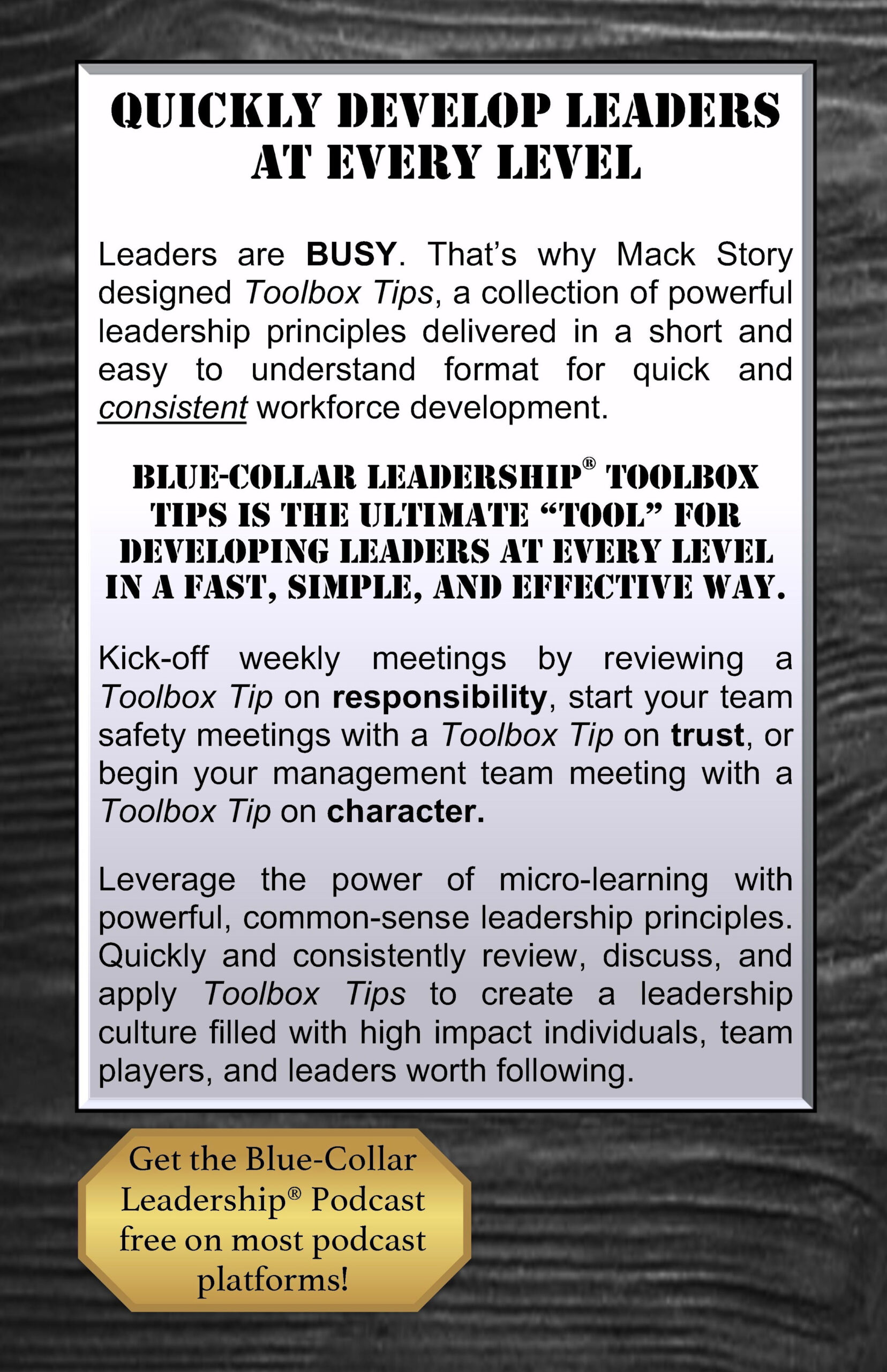 Blue-Collar Leadership® Toolbox Tips is the ultimate “tool” for developing leaders at every level in a fast, simple, and effective way.